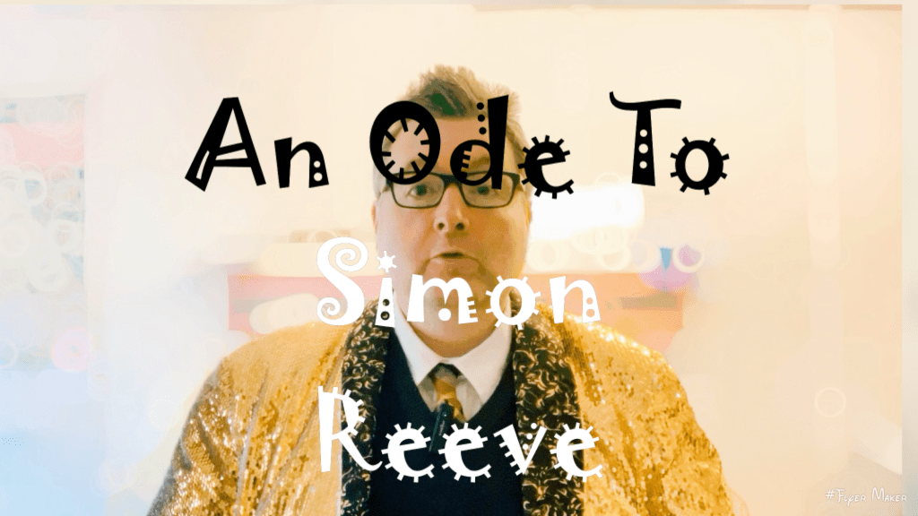 I stepped into a tropical bar. Simon Reeve was there in a slow dance, And I lost myself to his floppy fringe Whose sweat-soaked flappy fronds would Tickle my blushing cheeks, Whose stubble scraped at the twilit skies Like a cat’s claws on anaglypta, Whose come-to-bed eyes betrayed none Of the entitlement of his classical features But a yearning for a sweetness so virile That he could have been a treacle tart And I ached, how I ached, To be the custard.