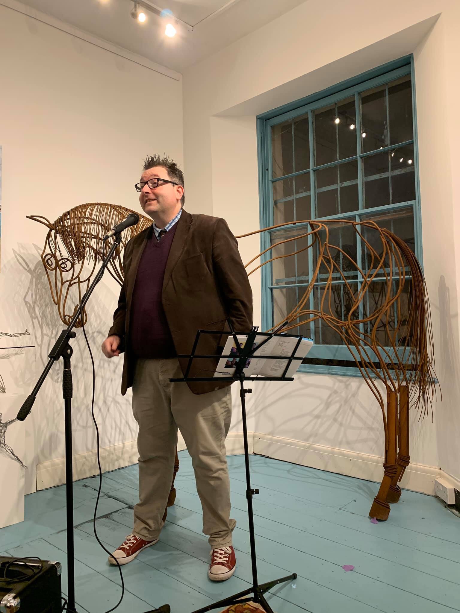 When I first started performing back in the late 2000s, the local scene was heavily influenced by comedy and surrealism in south Devon, and I soon joined in with a bizarre mix of my own, of prop-based avant gard and whimsical verse which, at the same time, mocked the whole idea of poetry performance. And for a while, this was my Unique Selling Point. And although I wore seemingly normal clothes on stage, I was very much a persona, the Professor of Whimsy, an exaggeration of my actual self.
